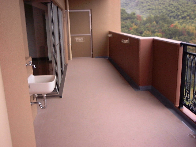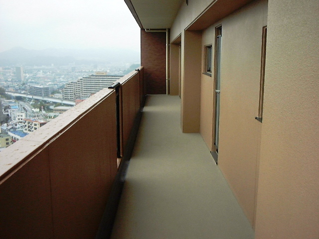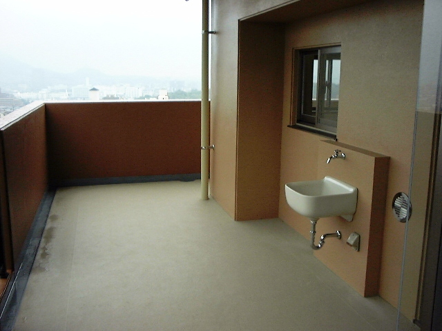 | 西方向のベランダです。「12Fの眺望」が売りですから 広島湾が一望できます 高台に建てたマンションで普通のマンションの高さで「 22F建て」位あります |