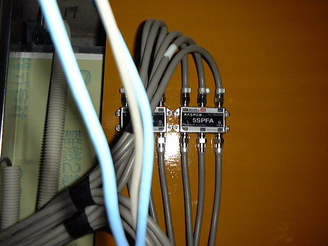 | まずは、バスルーム、天井ウラのテレビ用の配線 UTPを各部屋に2〜3本配線してるのですが、狭いので 写真が撮れません |